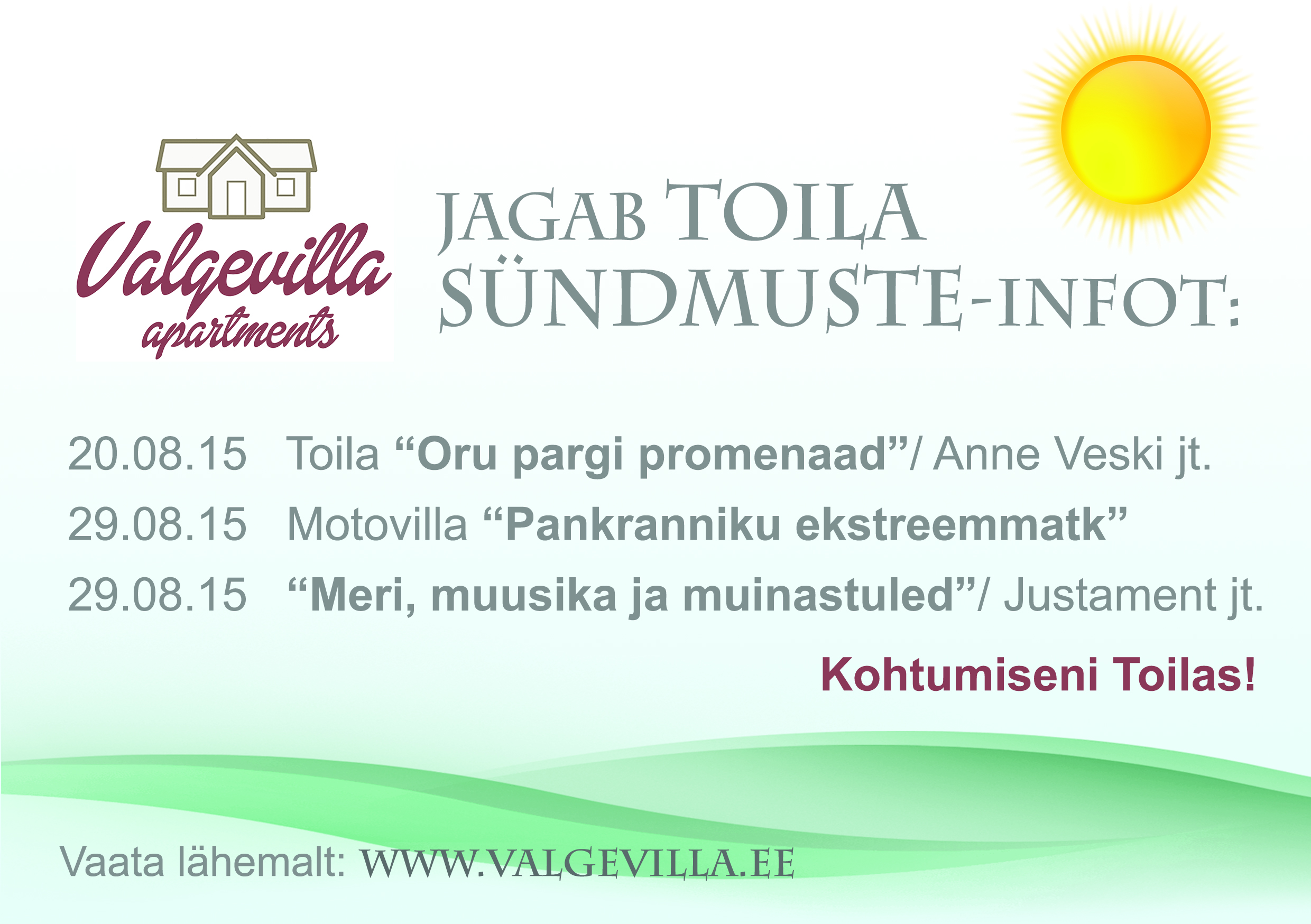 – Visuaali lõin ka võimalikele kujundustele, rohekas- sinine jalus iseloomustab nii parki, mille veerel asutakse, kui ka merd, mis on käeulatuses. Päike aga iseloomustab rannamõnusid, andes teada, et laiemale üldsusele tundmatu Valgevilla peaks ju siis asuma kusagil rannapiirkonnas.